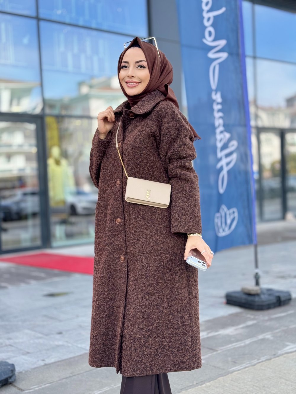 36638 Melanjlı Kaşe Bukle Kaban Kahve