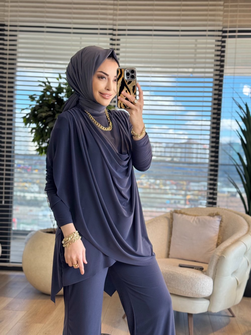4201 Omzu Pileli Önü Dökümlü Sandy Takım Antrasit