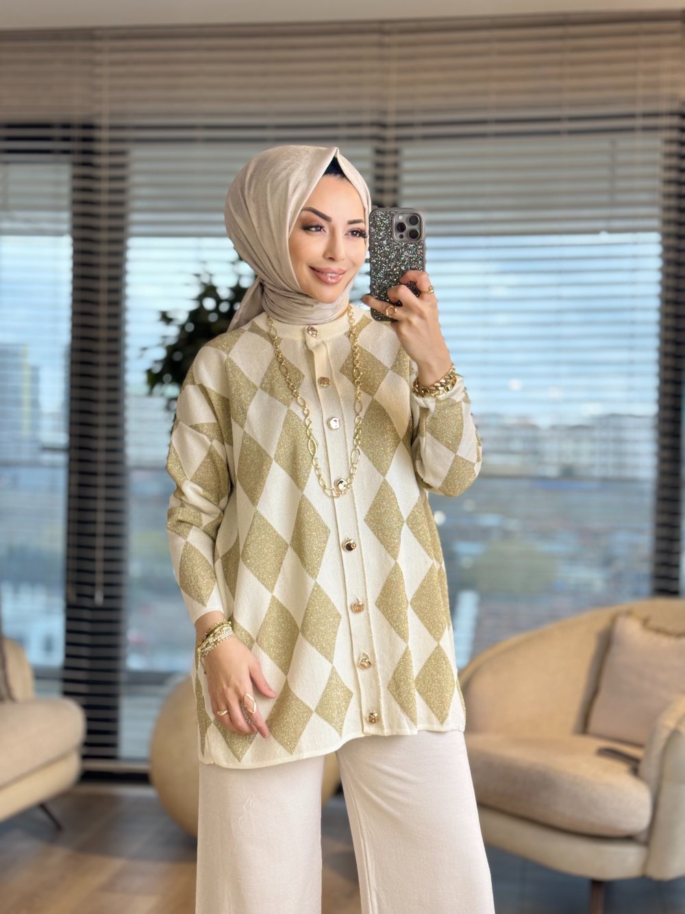 44191 Sim Baklavalı Desen Hırka Ekru