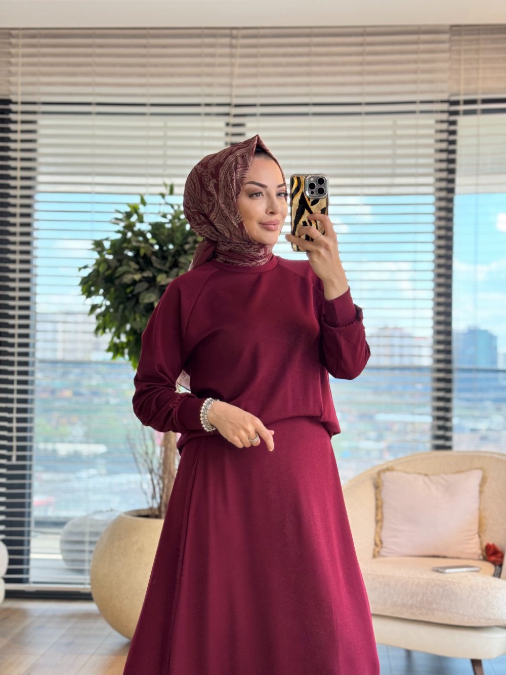 4425 Yarasa Kol Etekli Oysho Takım Bordo
