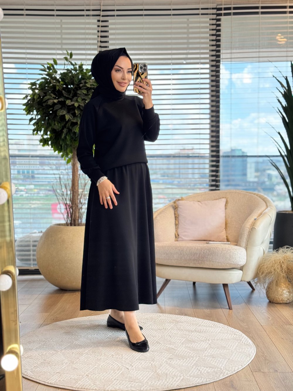 4425 Yarasa Kol Etekli Oysho Takım Siyah