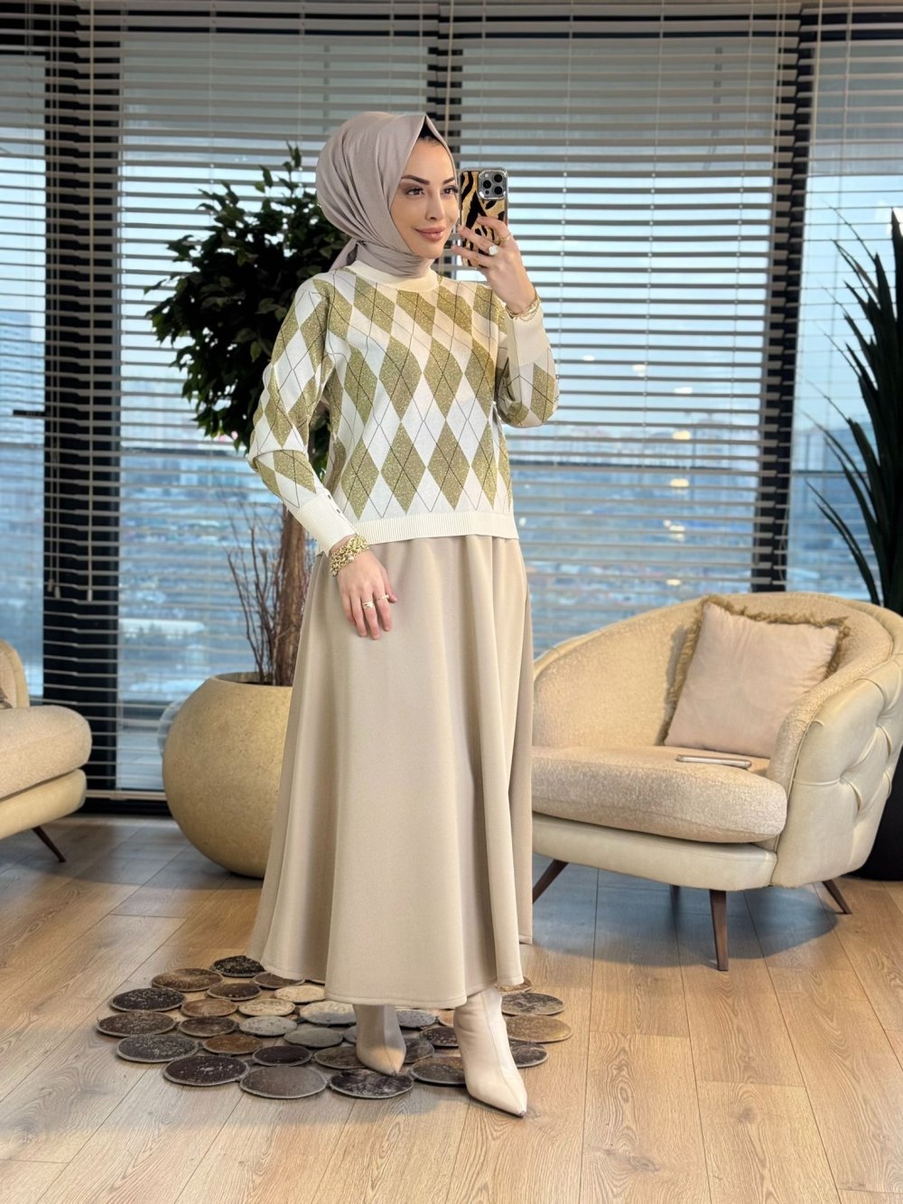 44251 Sim Baklava Desen Triko Kazak Ekru