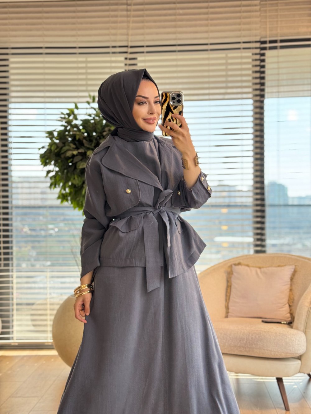 4463 Elbise Üstü Ceketli İkili Takım Gri