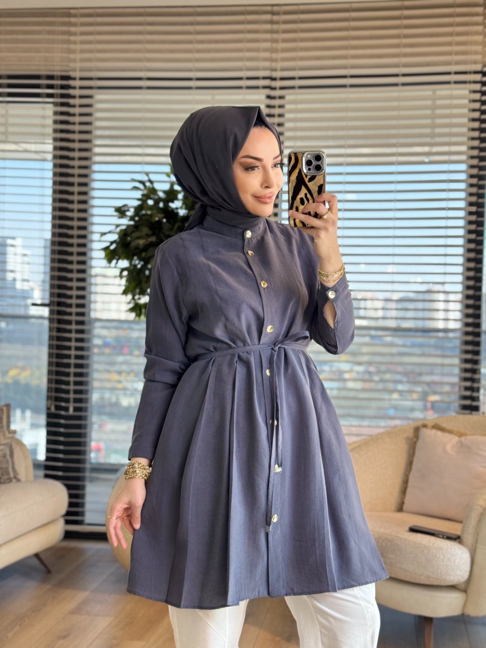 4475 Ön Dikiş Pile Detaylı Tunik Antrasit