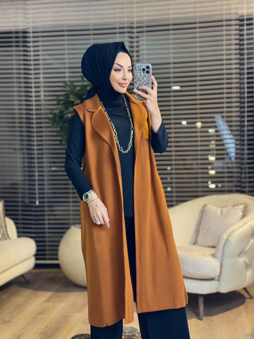 5266 Yakalı Triko Yelek Kiremit