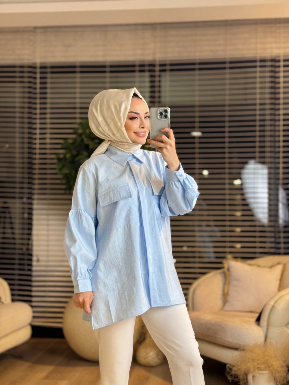 5779 Cep Kapaklı Gömlek Bebe Mavi