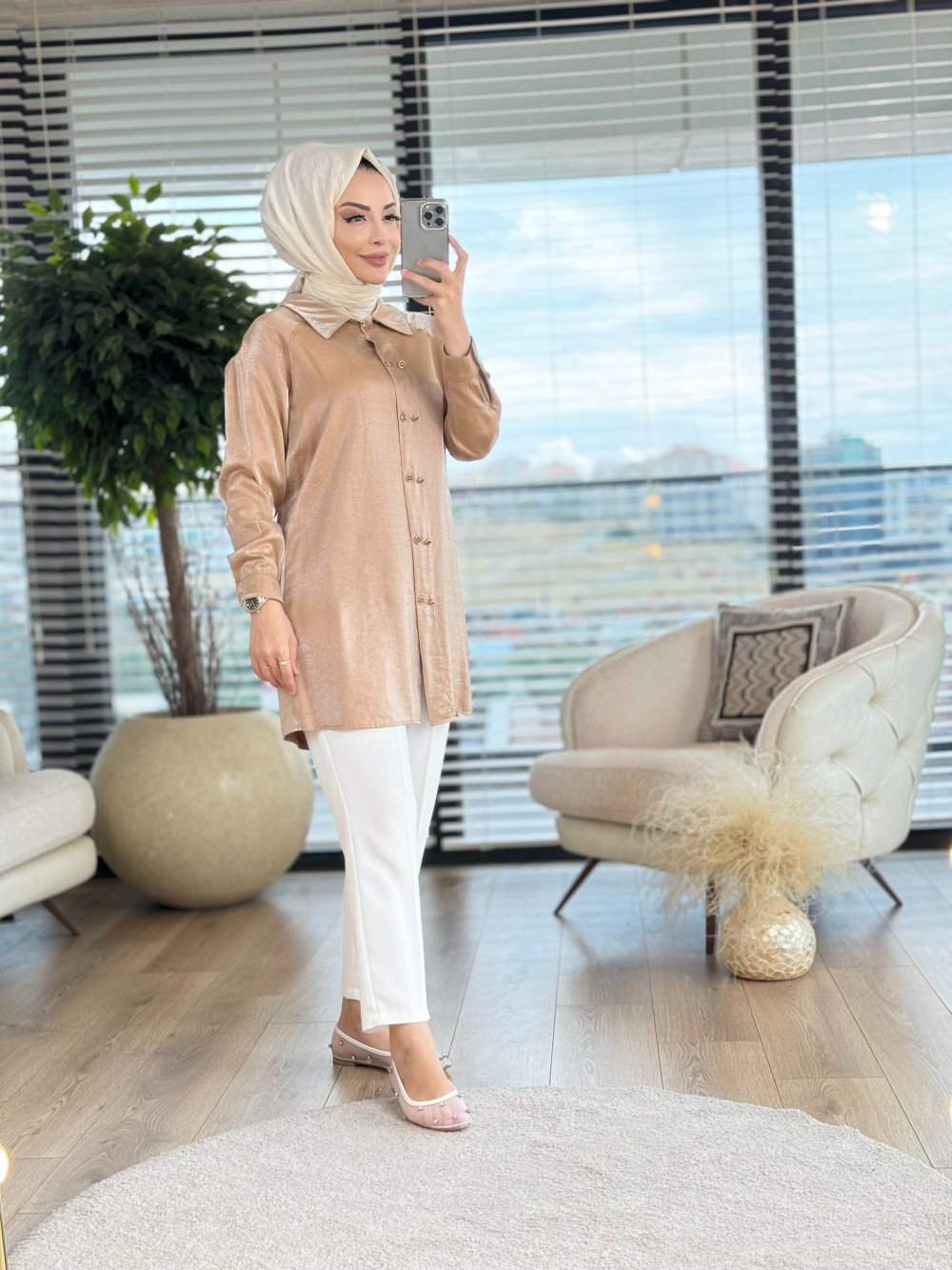 6183 Çift Düğmeli Tunik Latte
