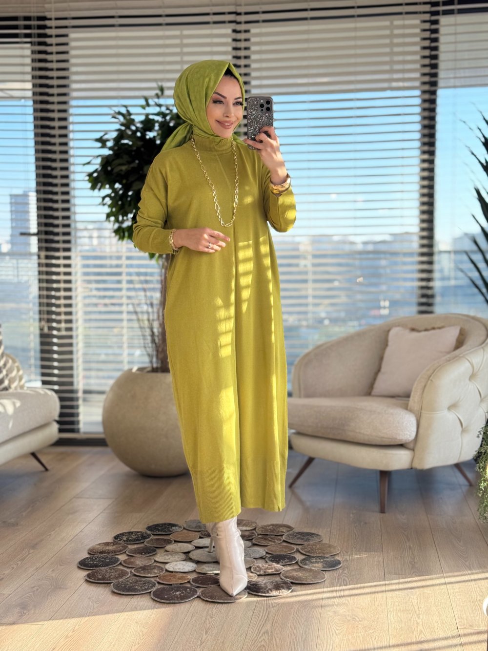 7017 Öpücük Yaka Vanezia Elbise Yağ Yeşili