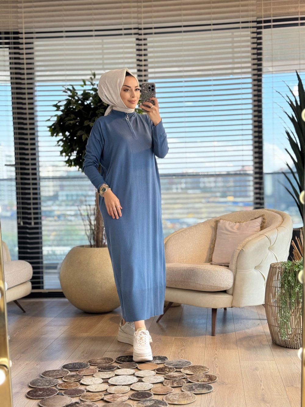7025 Patı Fermuarlı Vanezia Elbise İndigo