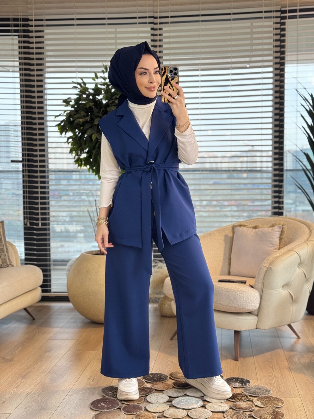71050 Omuzları Fermuarlı Yelekli Takım Lacivert