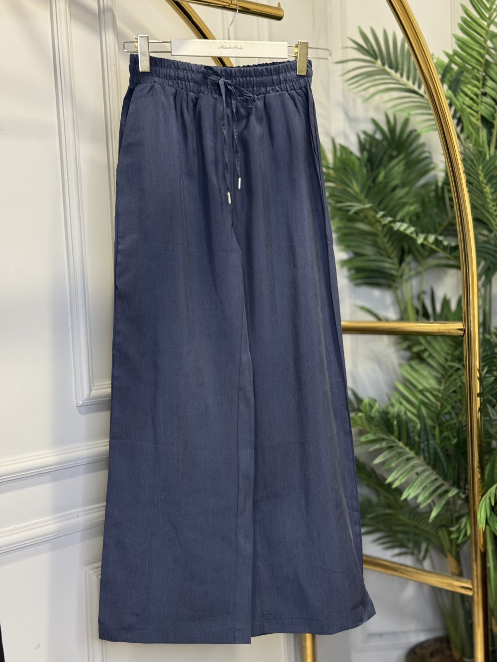 7272 Beli Lastikli Bol Paça Pantolon Lacivert