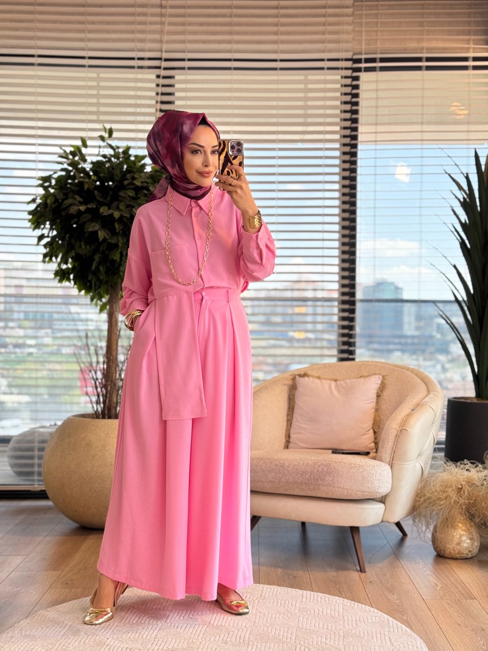 73067 Sol Taraf Parça Ve Cep Detaylı Takım Pembe