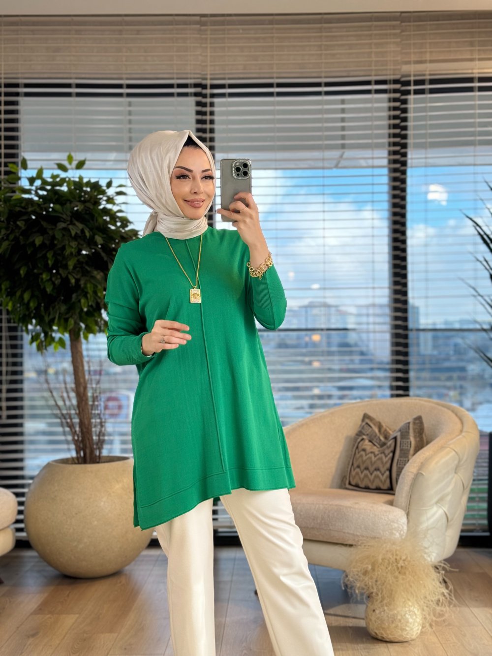 7330 Ön Ve Etek Ucu Biye Detaylı Triko Tunik Benetton