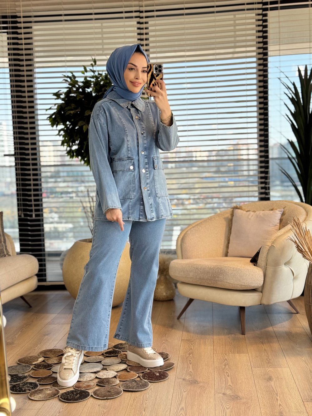 7452 Önü Cep Ve Dikişli Kot Takım Mavi