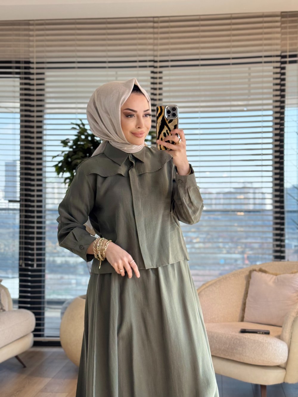 7510 Omzu Parçalı Etekli Takım Haki