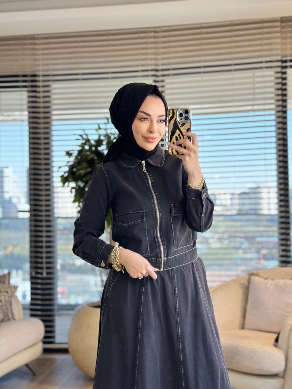 7514 Kot Önü Cep Ve Fermuarlı Etekli Takım Gri