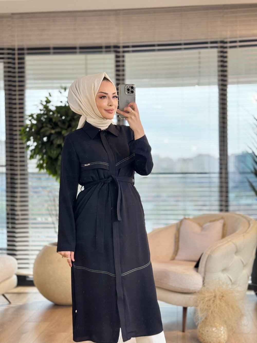 7642 Roba Parçalı Fermuarlı Kap Siyah
