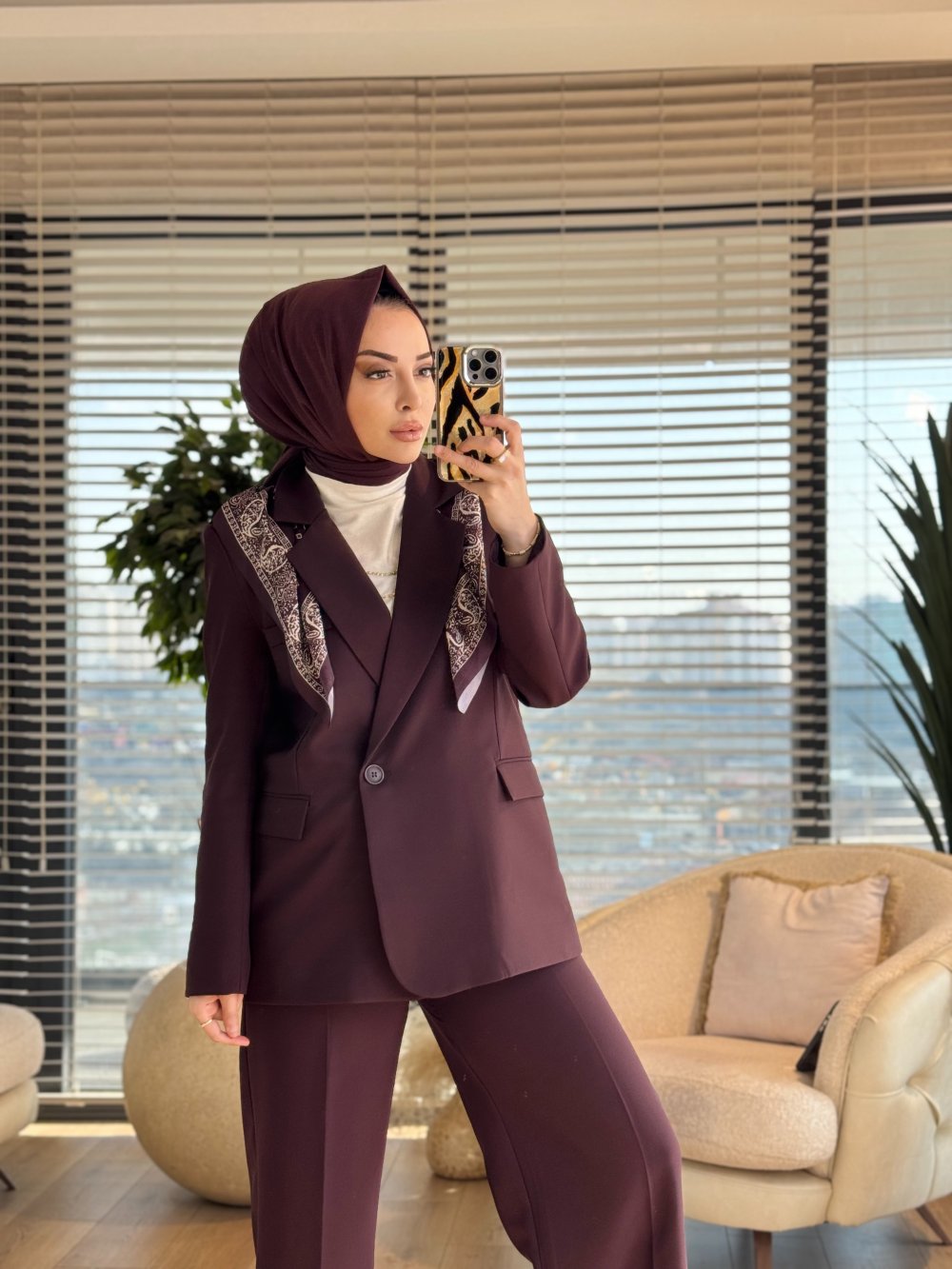 7665 Fular Detaylı Blazer Ceket Mürdüm