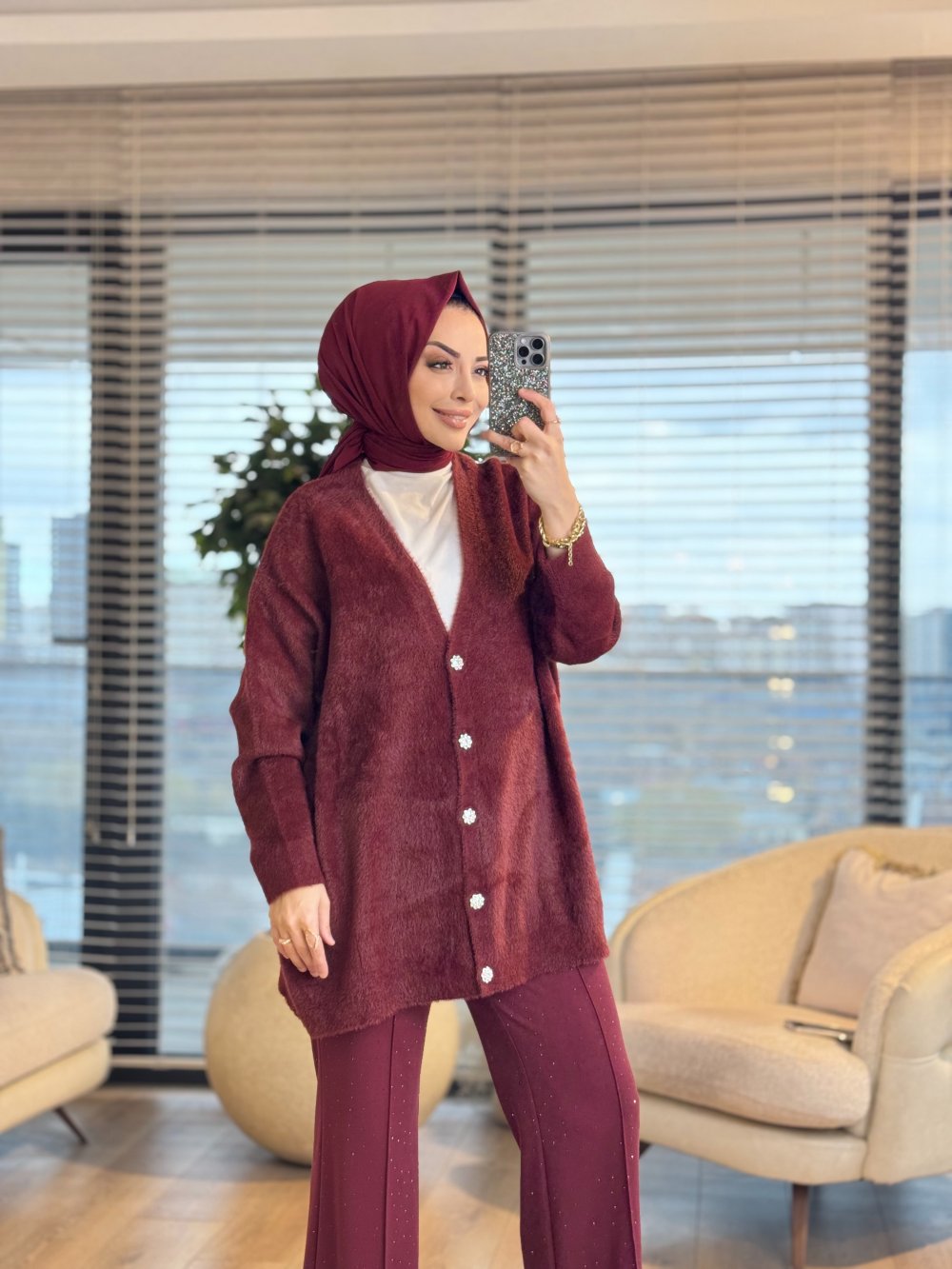 80259 Saçak V Yaka Hırka Bordo