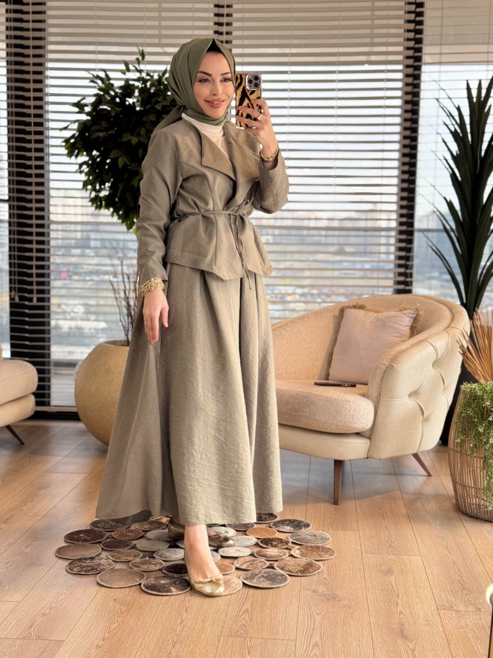 823 Ön İki Metal Düğmeli Takım Haki