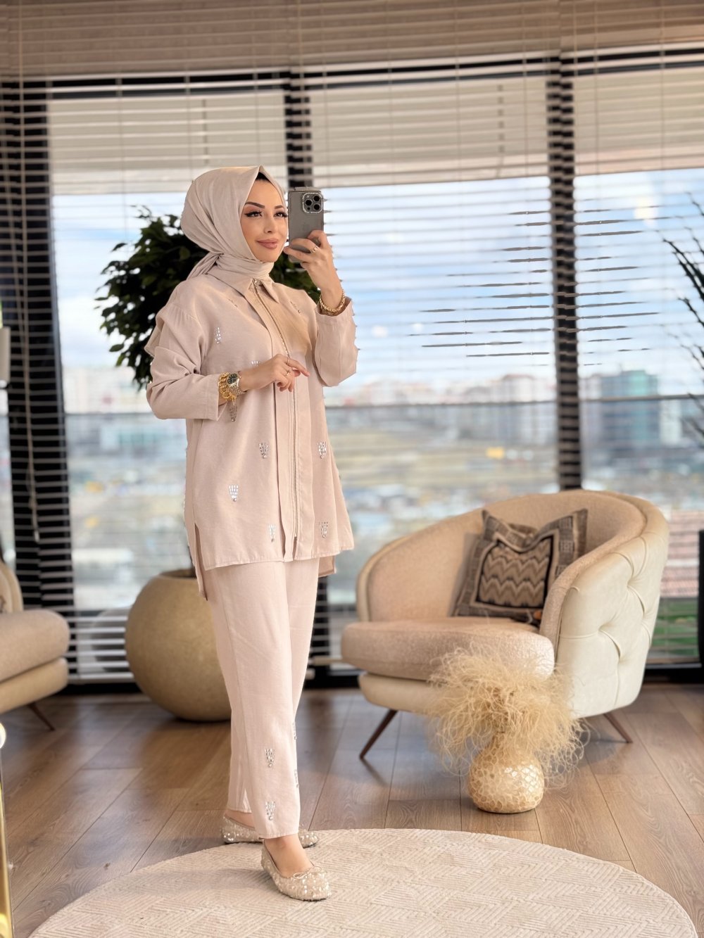 8509 Serpme 4 Sıra Taş Baskılı Takım Siyah