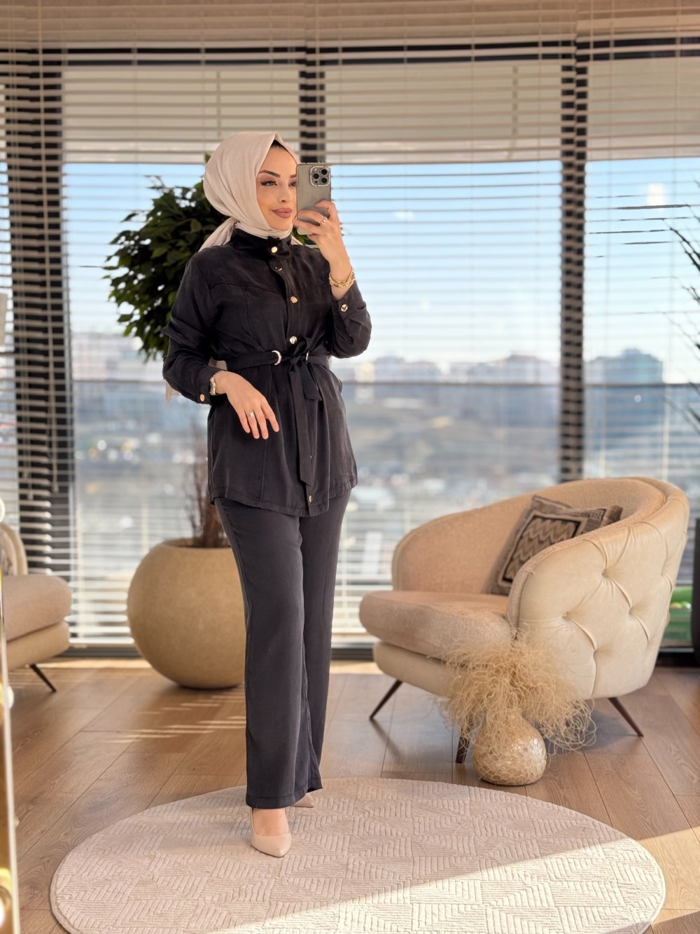 8514 Ön Çıtçıtlı Bel Kuşaklı Takım Siyah