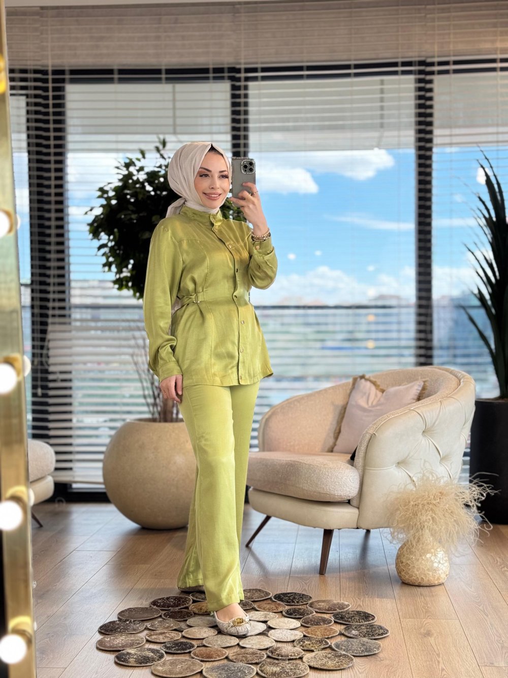 8514 Ön Çıtçıtlı Bel Kuşaklı Takım Yağ Yeşili