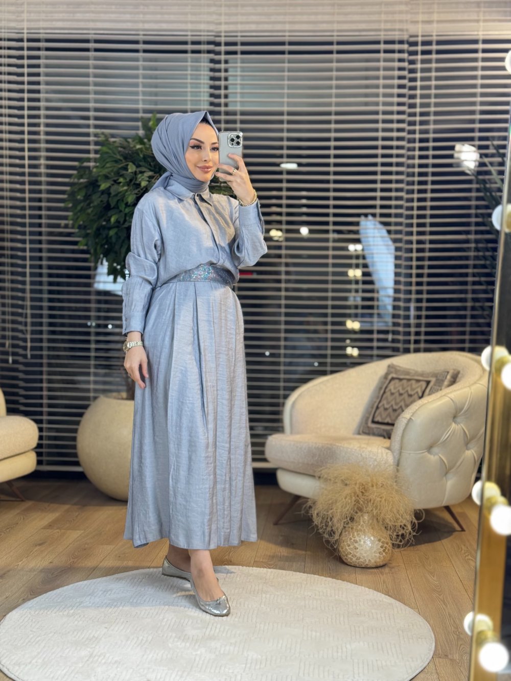 8520 Etek Beli Taş Kemerli Takım Siyah