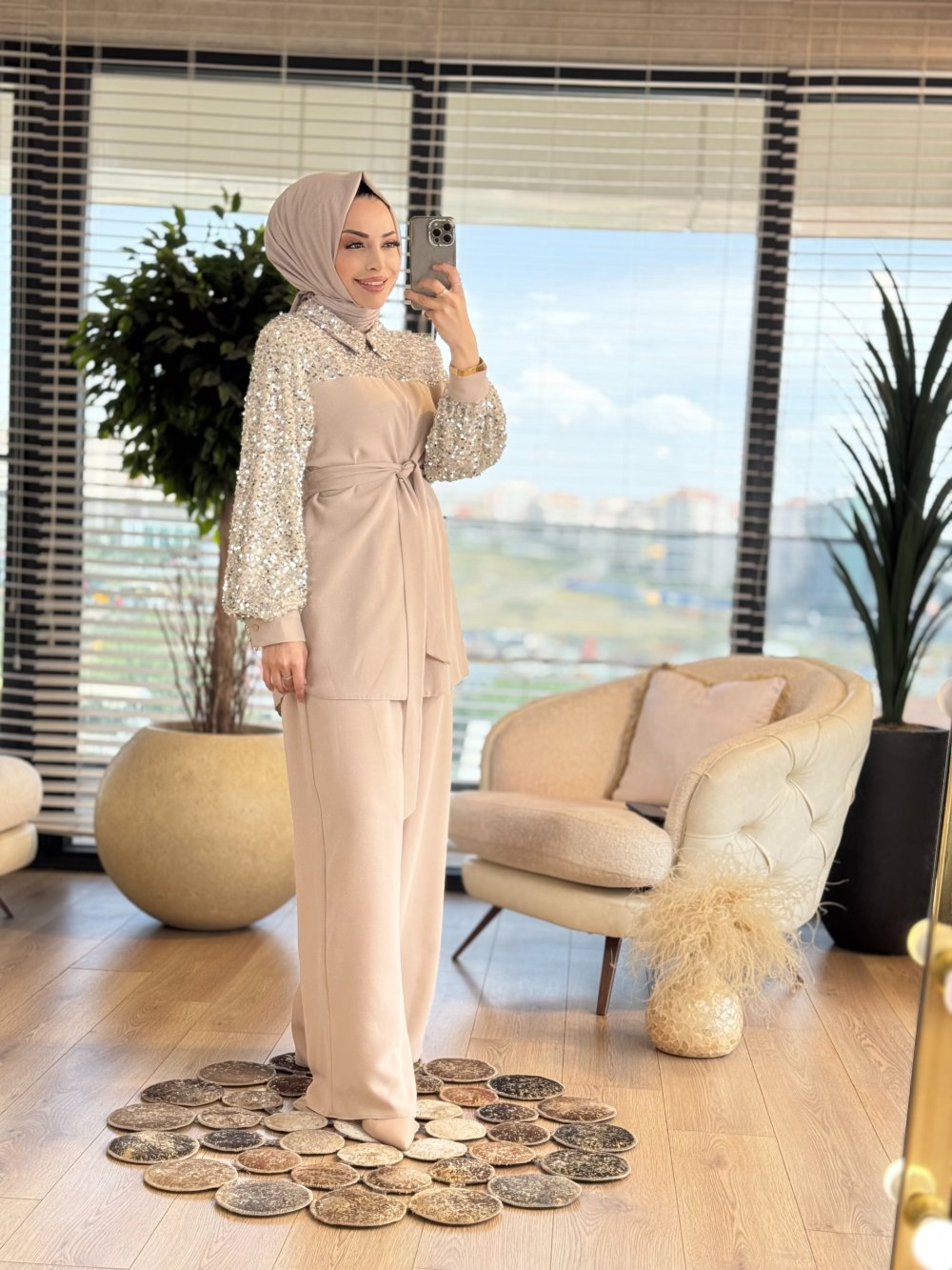 8533 Omuz Ve Kolu Pullu Takım Bej