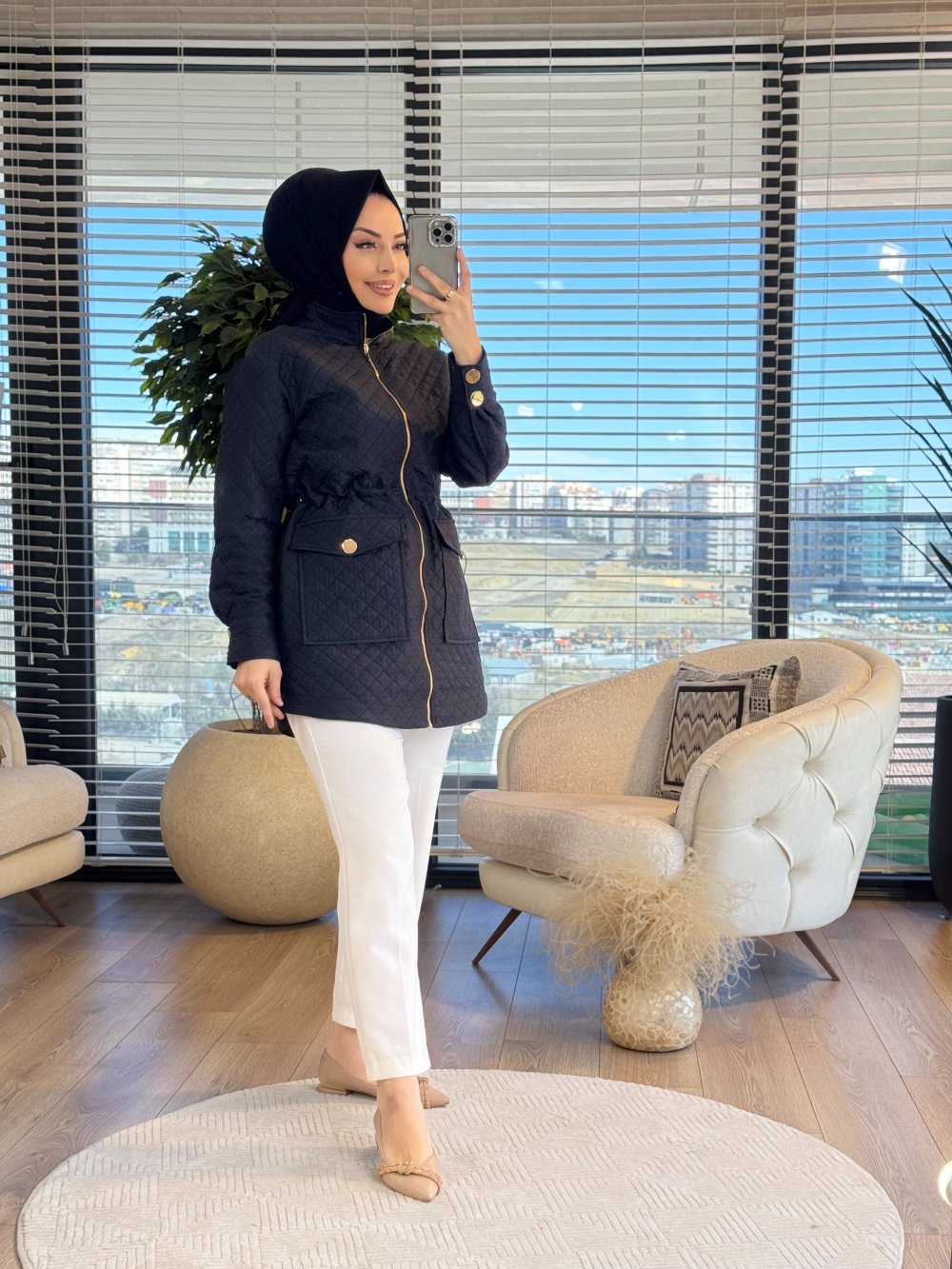 9251 Kapitone Üstü Varak Baskı Fermuarlı Kap Siyah