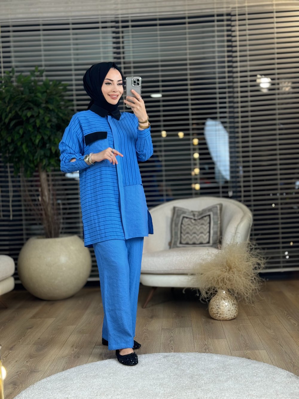 9657 Çizgi Parçalı Takım İndigo
