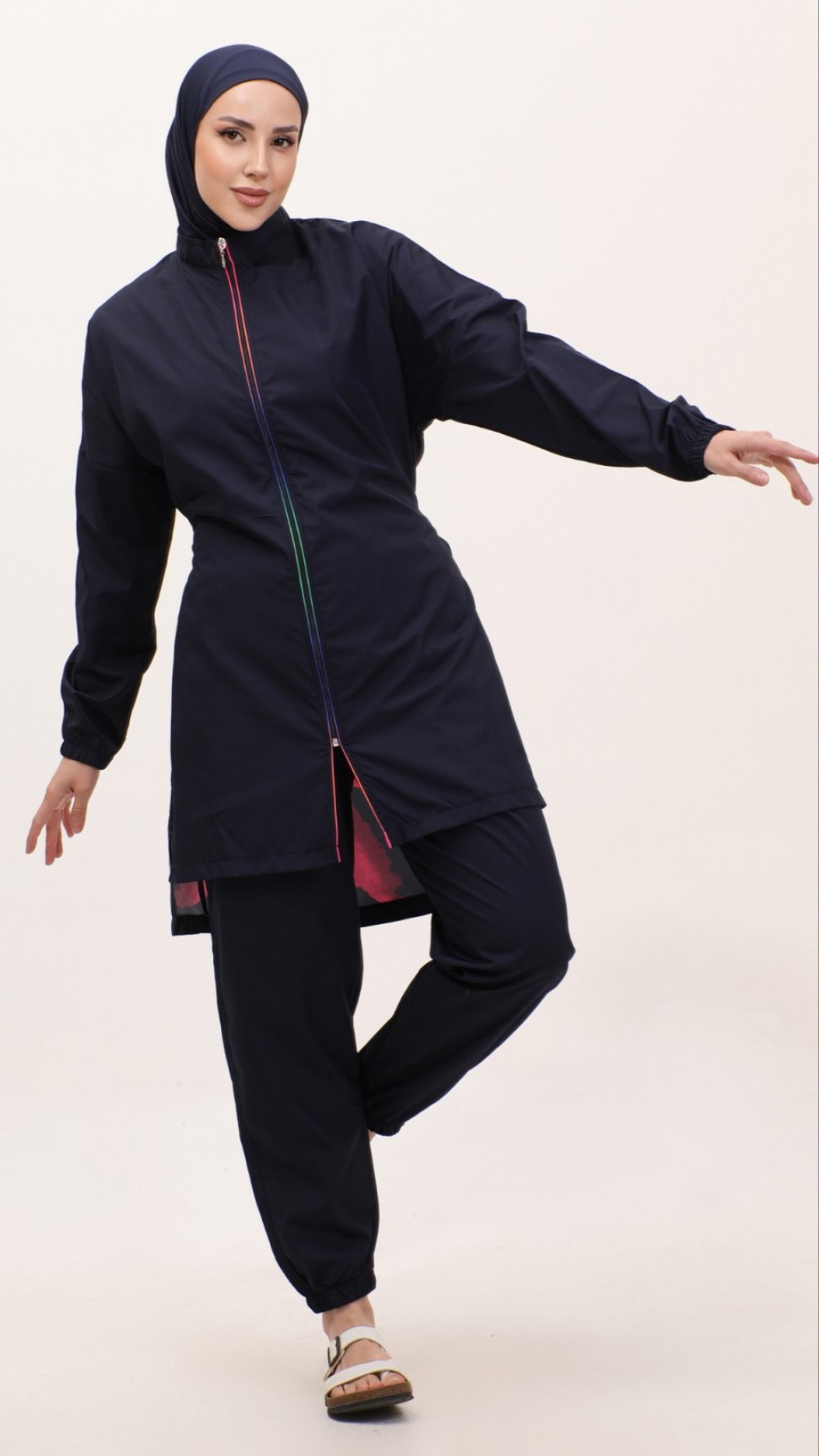 9902 Arkası Renkli Tesettür Mayo Lacivert