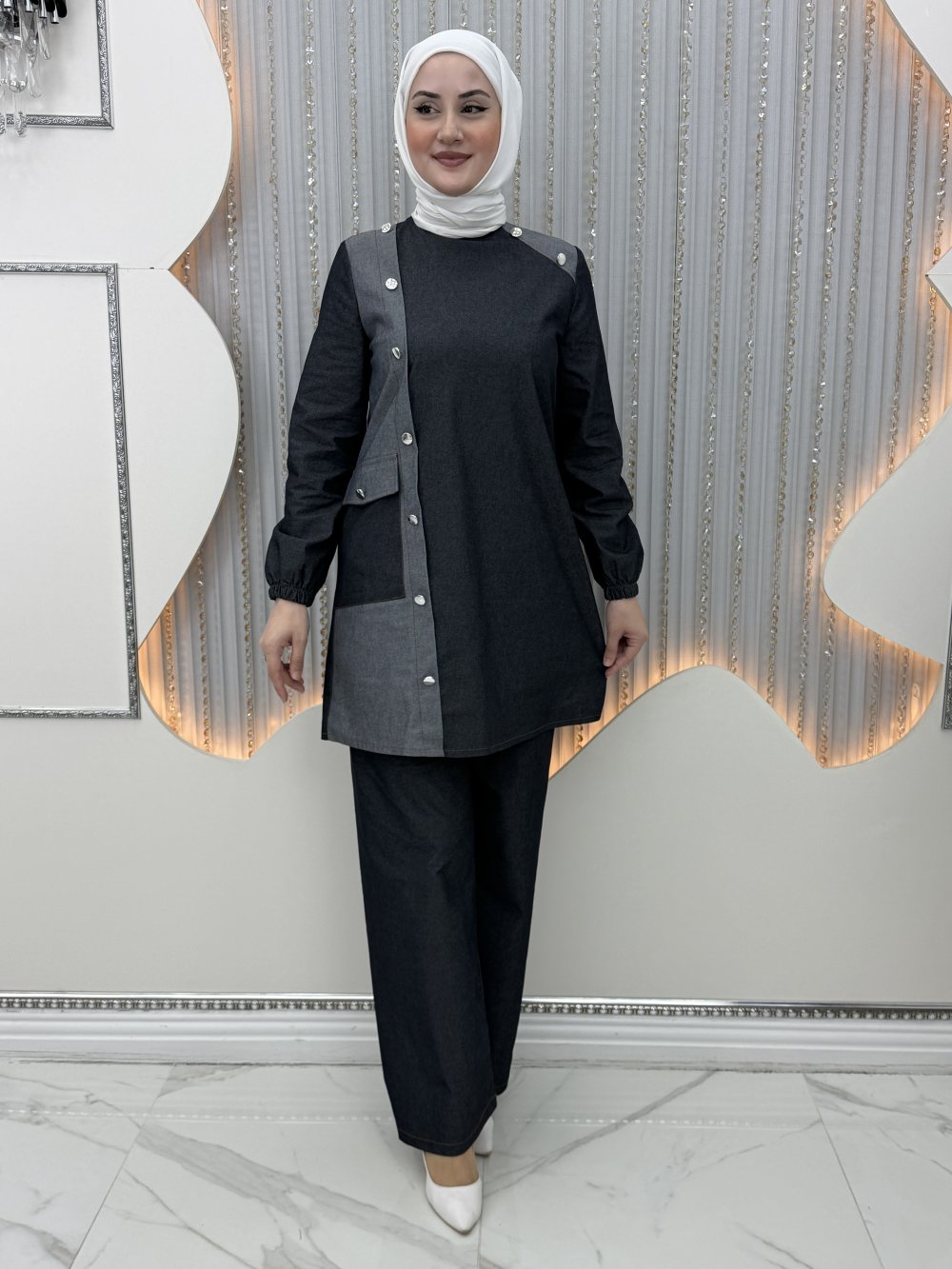 Almina Pantolonlu Takım Siyah