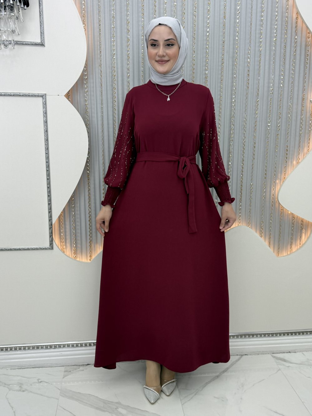 Arşin Taşlı Elbise Bordo