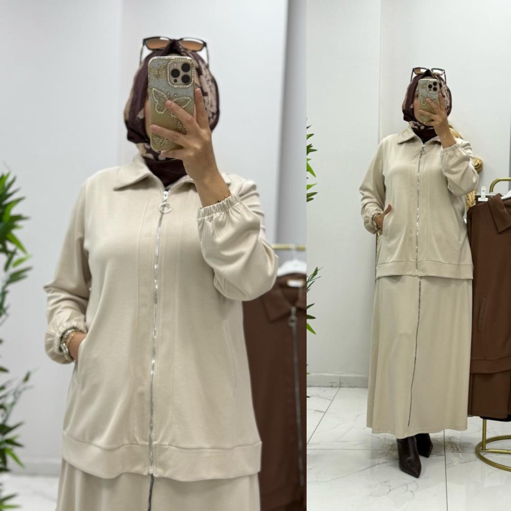 ?Yakalı cepli fermuarlı  etekli ikili takım