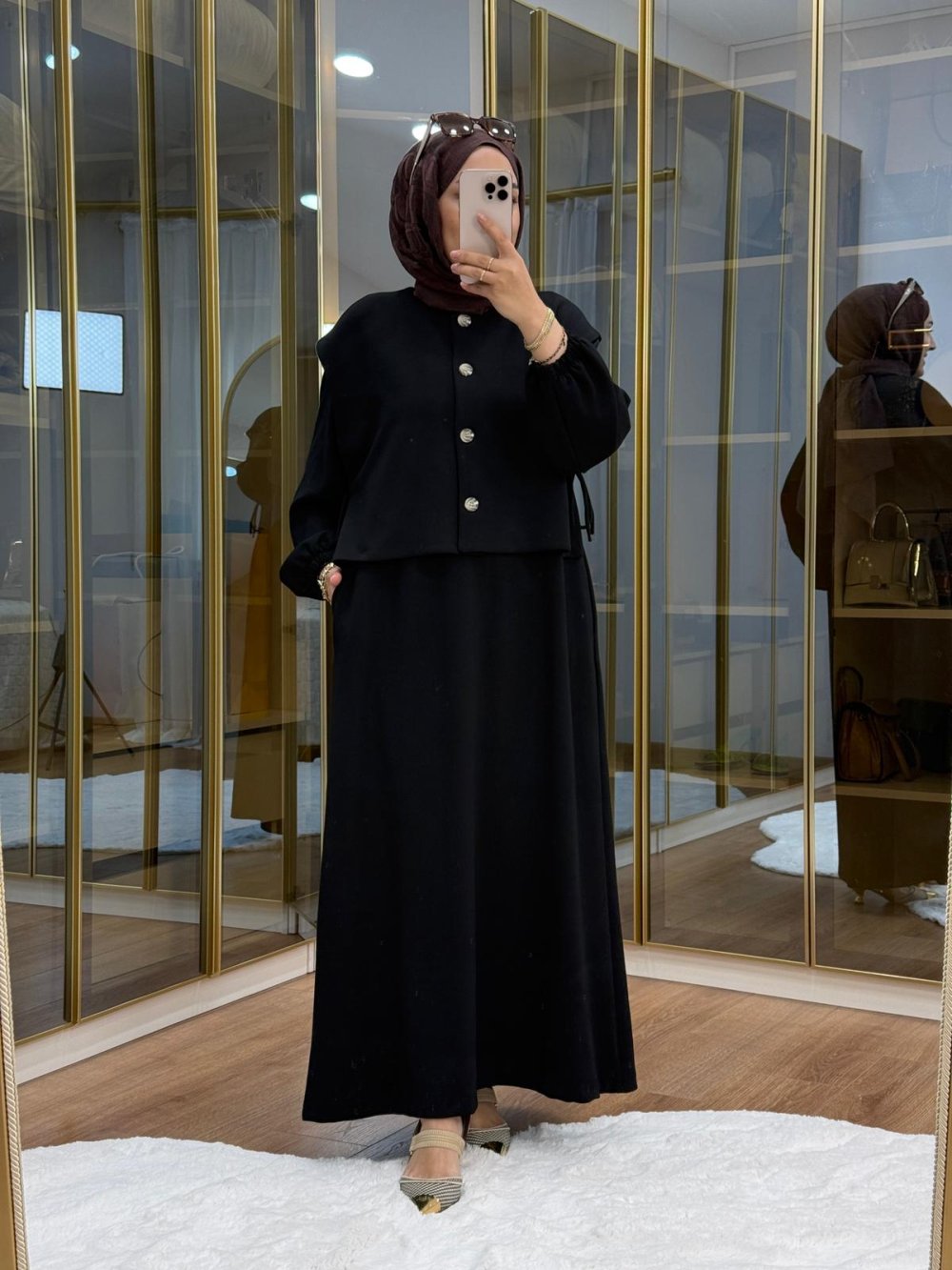 •Asimetrik düğme detaylı yelek elbise •