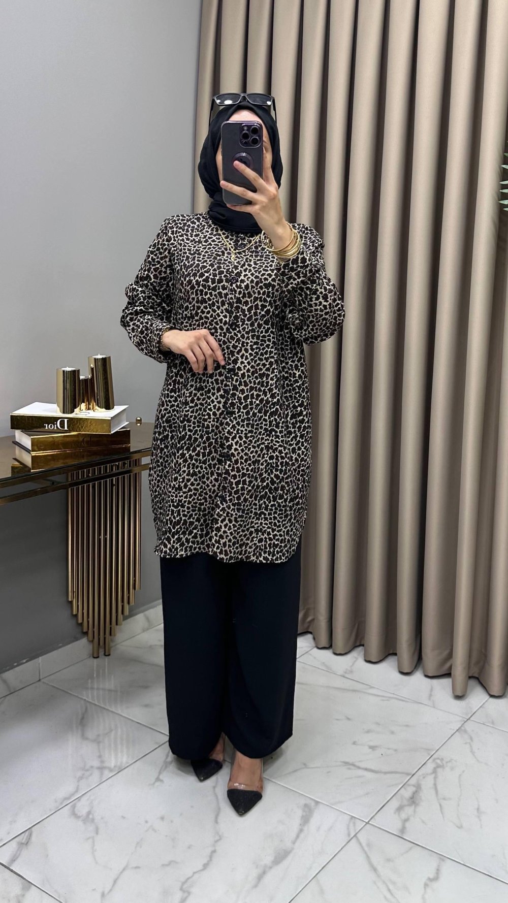 Tunik , boydan komple düğmelidir,
