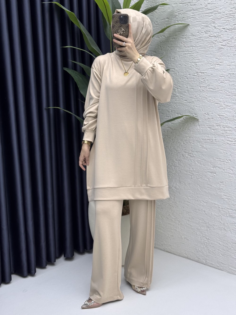 Çımalı Takım Tesettür Giyim Taş Rengi