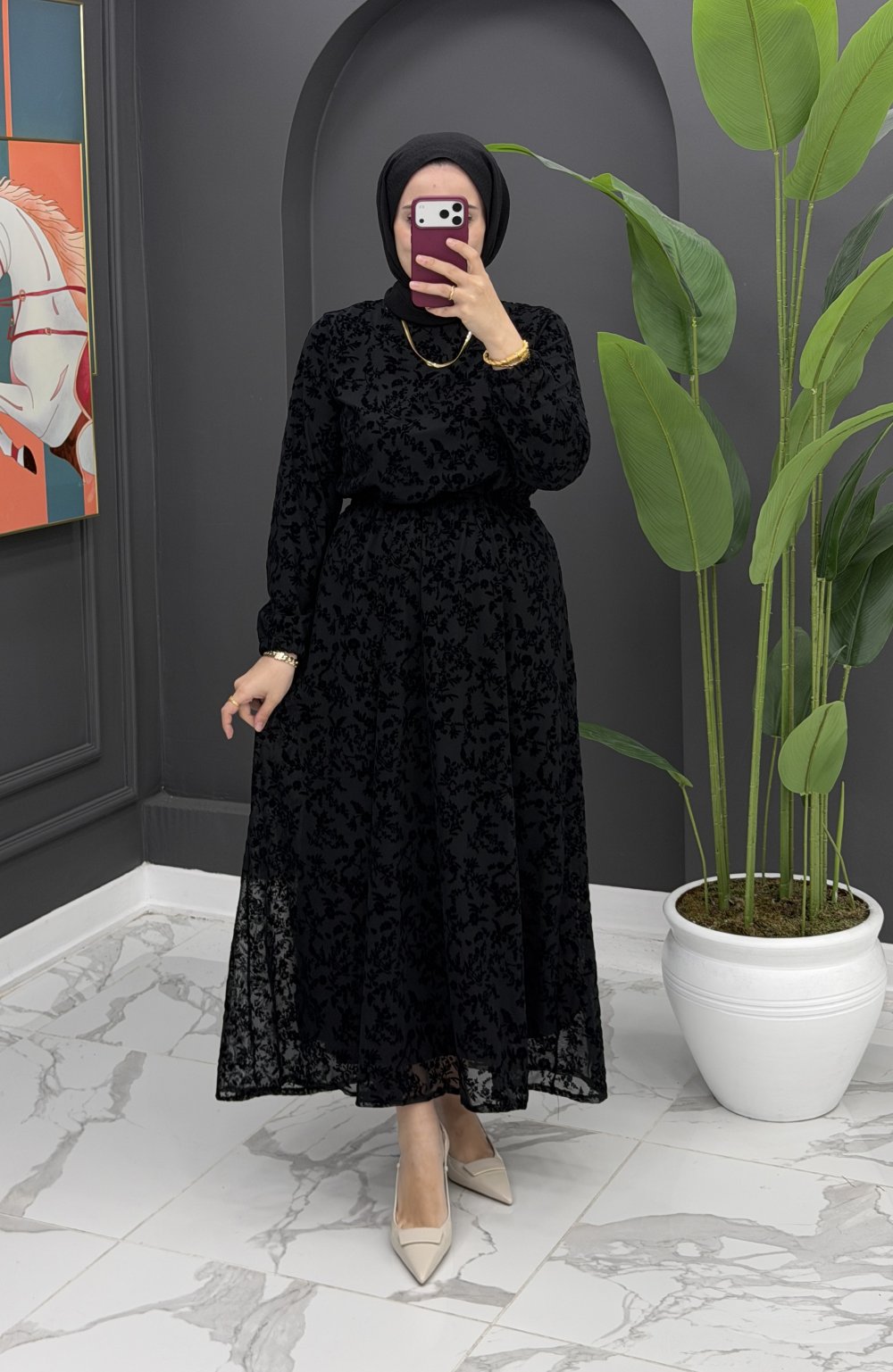 Dantel detaylı elbise-Siyah