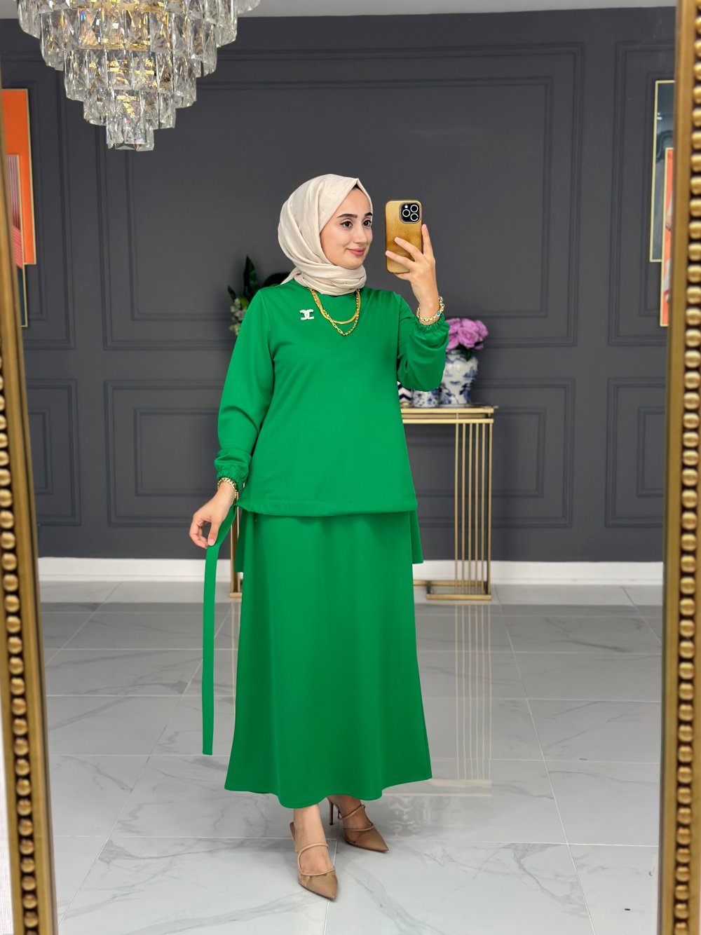 Doğa Örme Etekli Takım - Çam Yeşili
