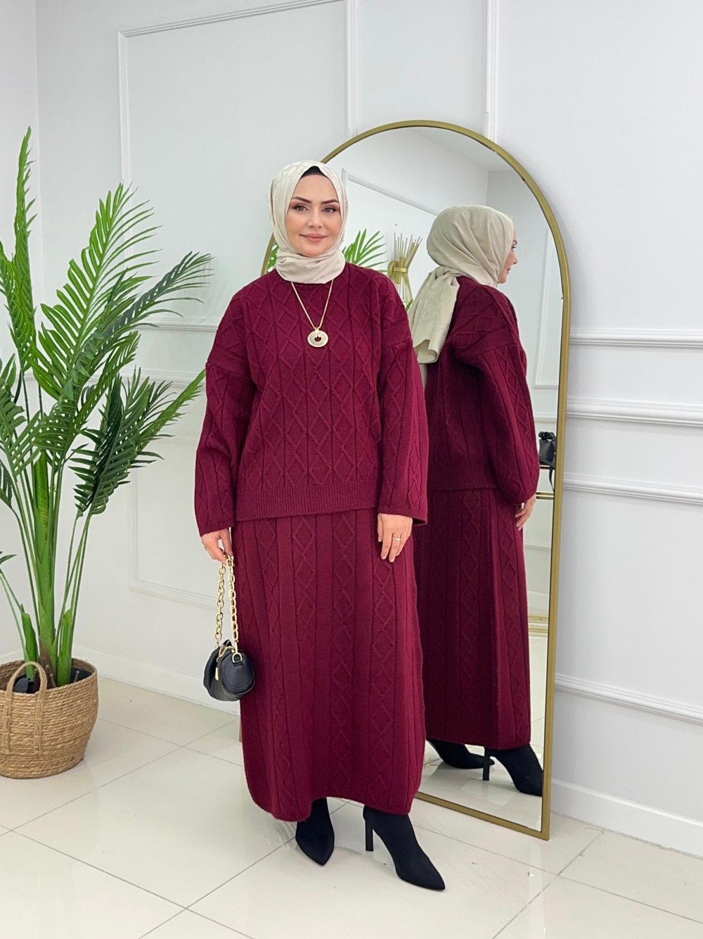 ELVİN ETEKLİ TAKIM- BORDO