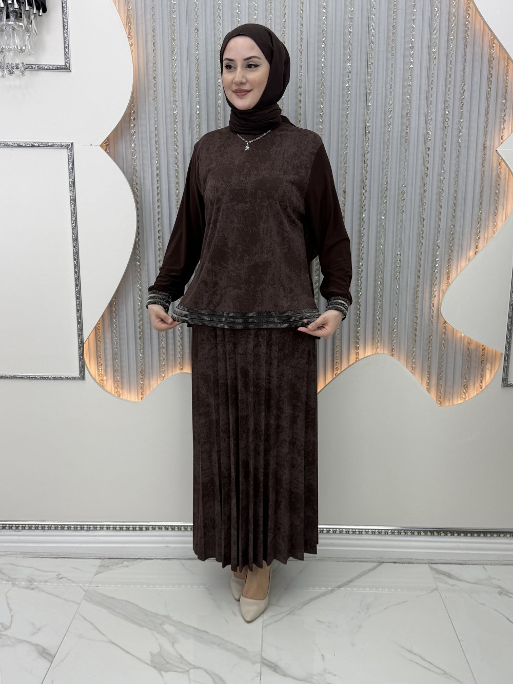 Gece Etekli Takım Kahverengi