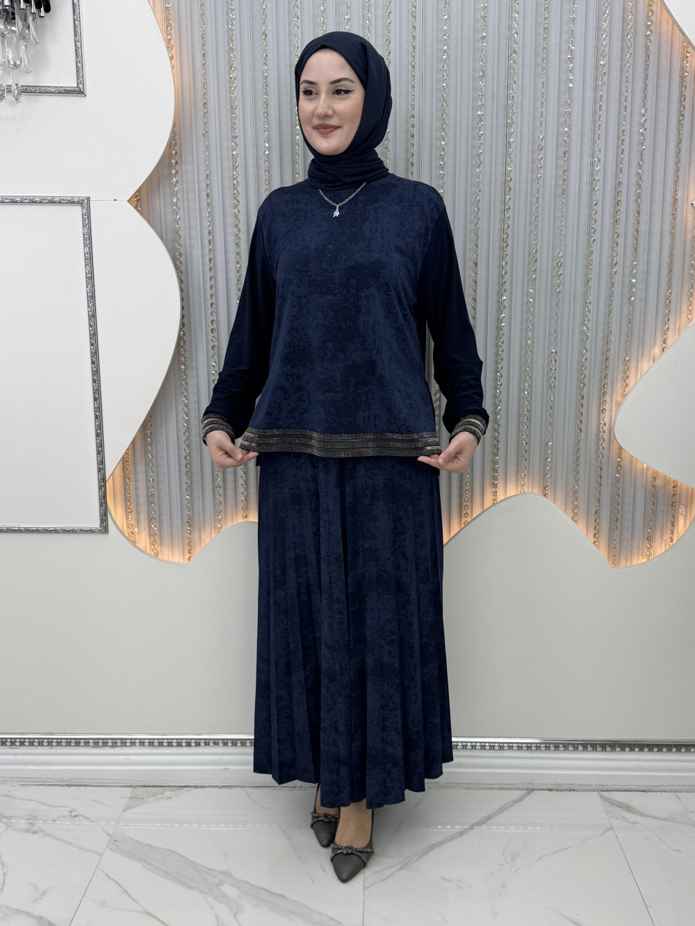 Gece Etekli Takım Lacivert