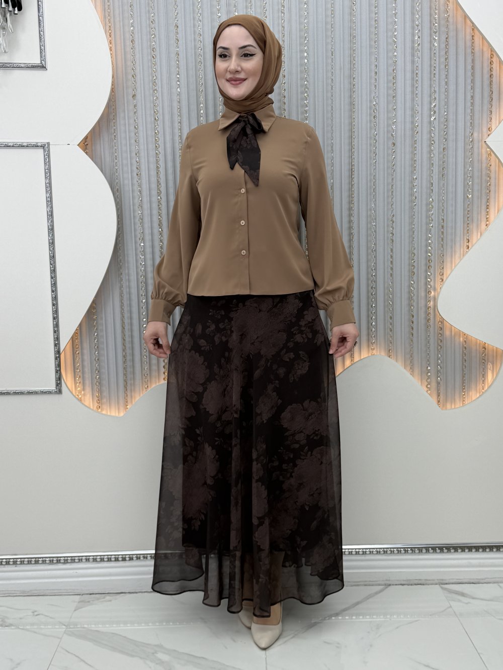 Gülnaz Etekli Takım Kahverengi