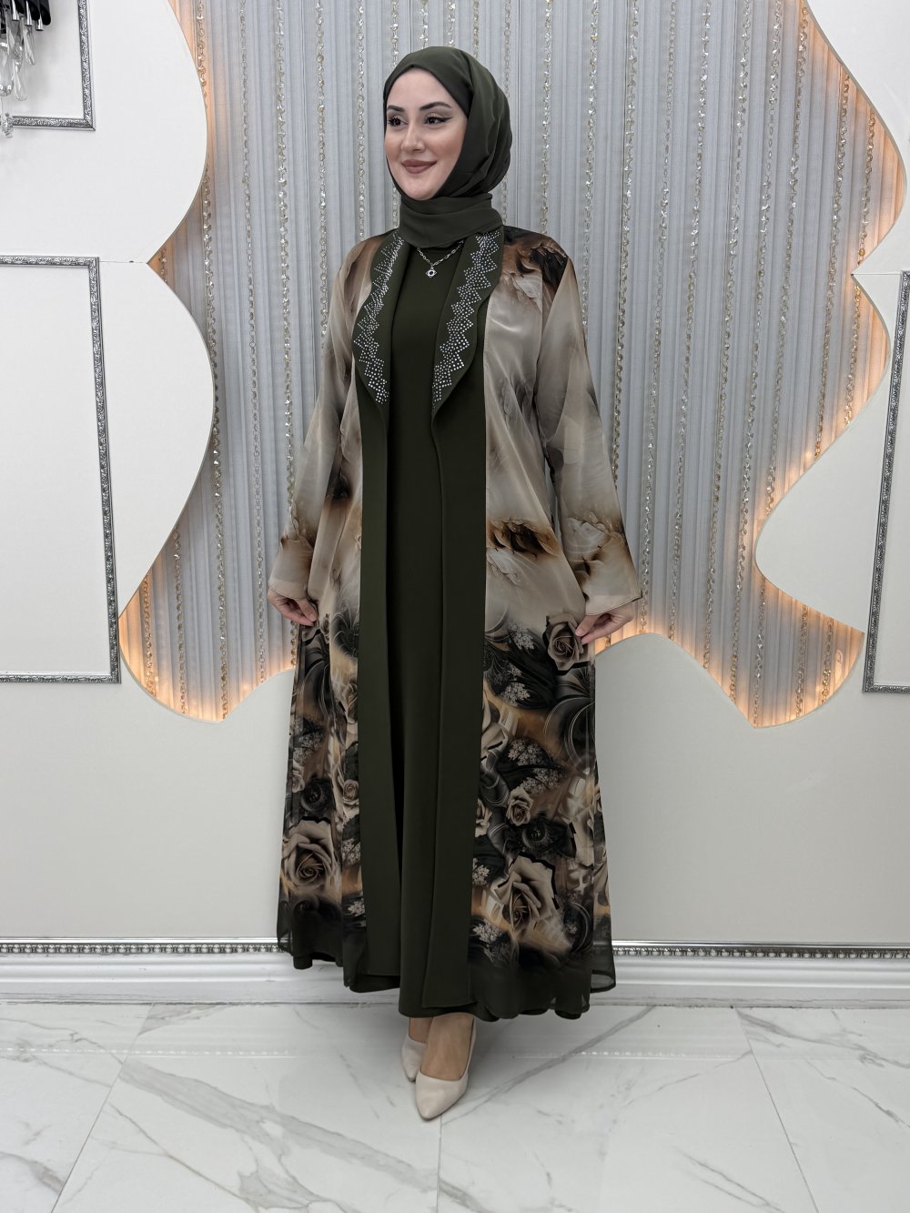 İlkin Elbiseli Hırka Haki