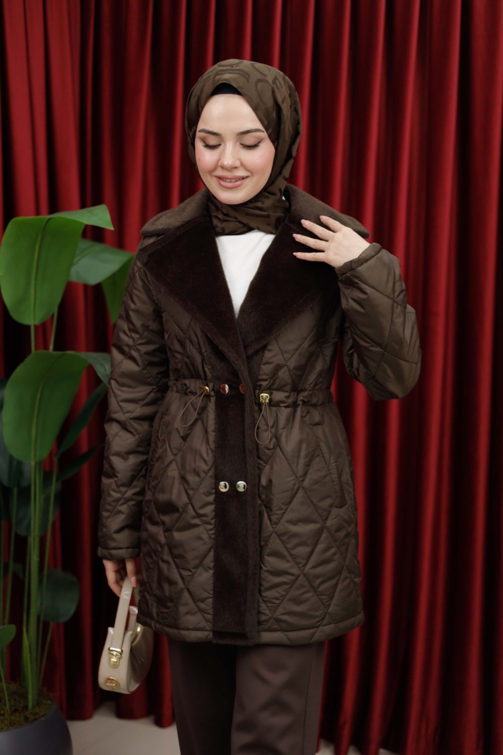 KAPİTONE MONT - KAHVERENGİ