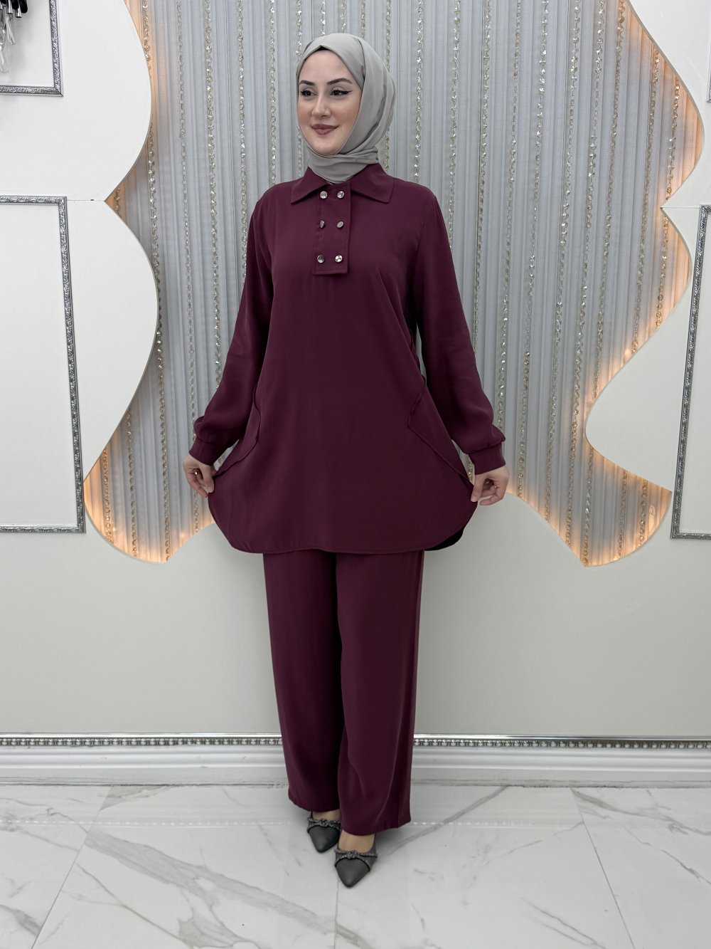 Megan Taşlı Takım  Mürdüm
