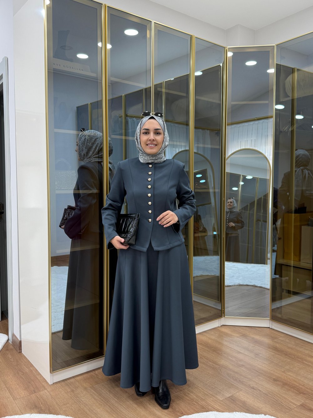 Kulp Detaylı Astarlı Etekli Takım Antrasit