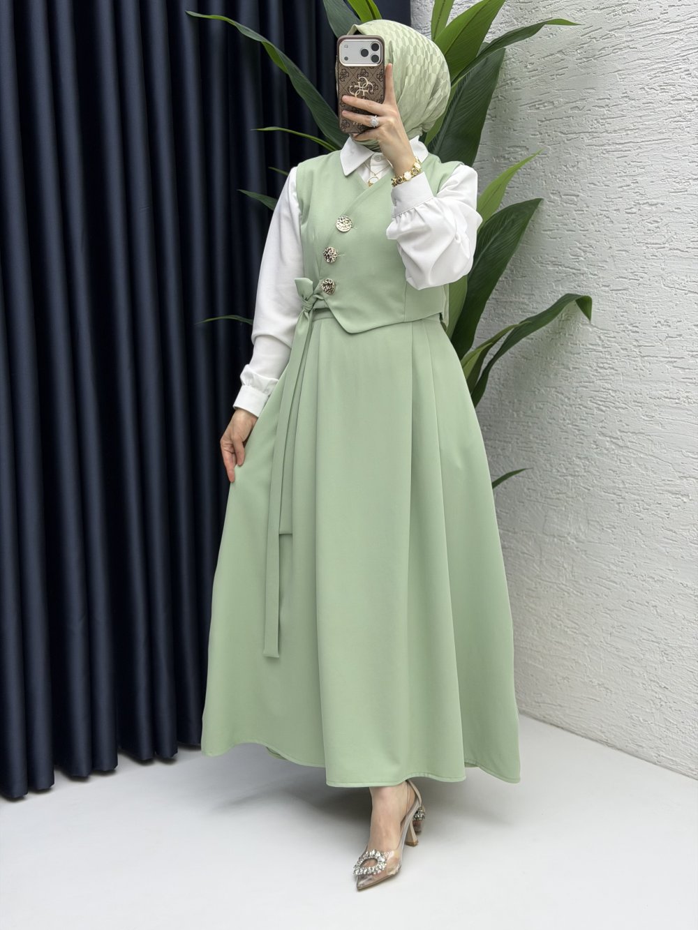Lalezar Etekli Takım Tesettür Giyim Çağla Yeşil