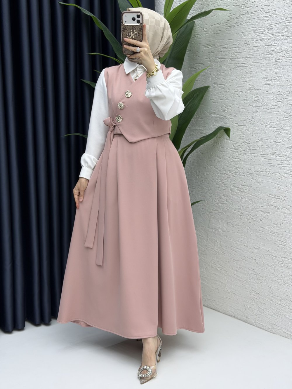 Lalezar Etekli Takım Tesettür Giyim Gül